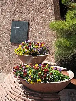 Im Kirchenbau kam erstmals in großem Maßstab Stahlbeton als Sichtbeton in den Jahren 1908 bis 1910 in der Lutherkirche in Bad Steben und der Ulmer Pauluskirche zur Anwendung.[8] Das Freiburger Bauunternehmen Brenzinger & Cie. errichtete ab 1929 unter dem Architekten Carl Anton Meckel die Kirche St. Konrad als eine der ersten mit einer Fassade aus Sichtbeton.[9] Die Basler Antoniuskirche wurde zwischen 1925 und 1927 als erste reine Betonkirche der Schweiz vom Zürcher Architekturprofessor Karl Moser und der Baufirma G. Doppler und Sohn in schalungsrohem Sichtbeton erbaut. Der Bau steht seit 1987 unter Denkmalschutz und musste wegen Verwitterungsschäden zwischen 1981 und 1991 aufwendig restauriert werden.[10]
