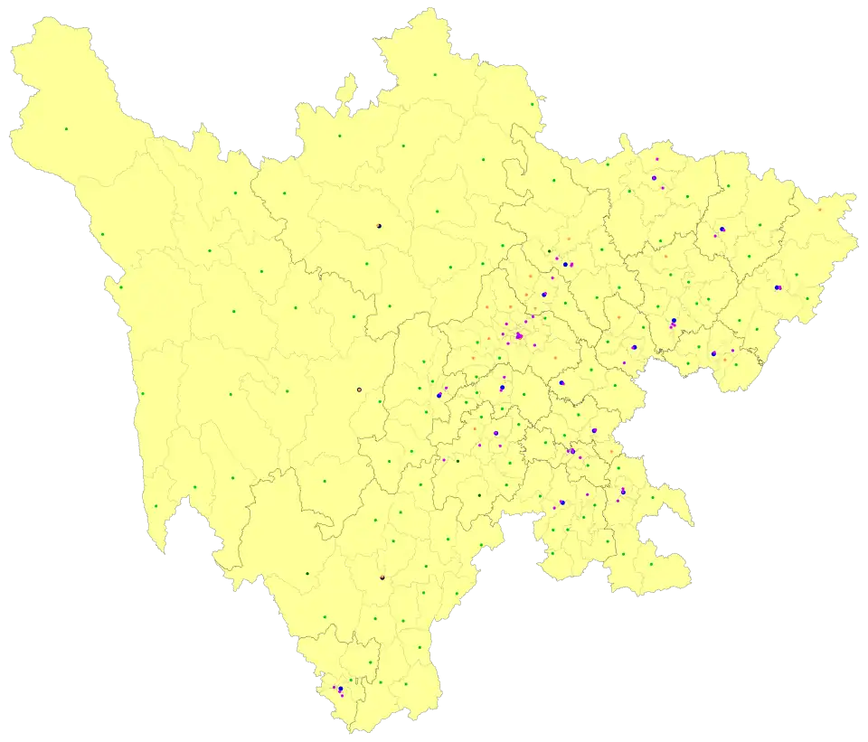 - ↑ Thomas Brinkhoff: Sichuan (China): Provinz, Städte & Kreise – Einwohnerzahlen, Karten, Grafiken, Wetter und Web-Informationen. In: citypopulation.de. Abgerufen am 10. September 2024 (deutsch, englisch).