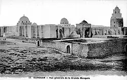 Trotz Umbauten zwischen dem 17. und 19. Jahrhundert ist der alte Kern der Hauptmoschee aus der Zeit der Aghlabiden in seiner ursprünglichen Form heute noch erhalten. Die Erneuerungsarbeiten sind am imposanten Haupteingang Bāb al-Bahū, hier als die „Hauptmoschee der Gefährten des Propheten (Eulogie)“ bezeichnet, am oberen Fries schriftlich dokumentiert und das Datum (1828–1829) in einem Chronogramm festgehalten. Der Text beginnt nach der Basmala mit einem Koranzitat; (Sure 22, Vers 77): „Ihr Gläubigen“ Verneigt euch (beim Gottesdienst), werft euch (in Anbetung) nieder, dienet eurem Herrn und tut Gutes! Vielleicht wird es euch (dann) wohl ergehen.