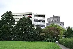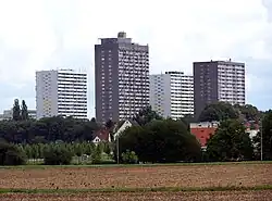 Pkw-Stellplätze sind in einem Parkhaus und auf einem Parkplatz vorhanden. Eine kleine Ladenpassage mit verschiedenen Geschäften dient der Versorgung mit Waren des täglichen Bedarfs. Grünflächen umgeben die Bebauung. Es leben etwa 2000 Personen in den Hochhäusern (Stand 2008).