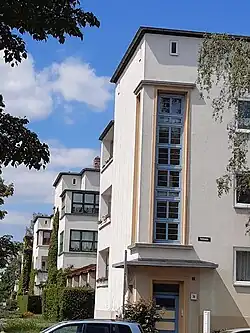 Wohnblock mit Eckgebäude am westlichen Ende -