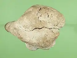 Siegburgit ist eine Bernsteinart, die 1875 von Arnold von Lasaulx[1] beschrieben wurde. Der Name geht auf den Fundort Siegburg bei Bonn zurück. In paläogenen Sanden des oberen Oligozän (Chattium) fielen beim Sandabbau im Raum Siegburg und Troisdorf feste, grauweiße, nierenförmige sowie unregelmäßig geformte knollige Konkretionen an. Sie bestehen aus Quarzsand, der durch ein Bindemittel aus fossilem Harz verfestigt ist. In einer anderen Gestalt kommt es am Fundort nicht vor. Eine neuere Beschreibung der Fundumstände stammt von 1968.[2] Wegen der leichten Brennbarkeit des Harzes wurden die Konkretionen als Brennmaterial und wegen des aromatischen Geruchs beim Verbrennen auch als sakrales Räuchermittel verwendet.