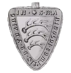 Graf Wolfrad senior von Veringen 1216–1267. „SIGILLUM • COMITIS • WOLVRATI • DE • VERIGEN“ In einer Urkunde vom Jahre 1216 verwendet.[4]
