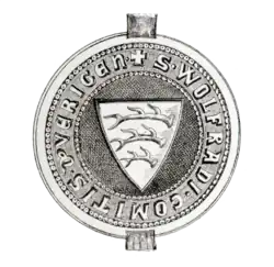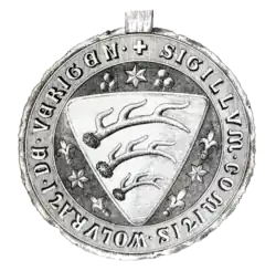 Graf Wolfrad 1297–1330. „S • COMITIS • WOLFRANOMI • DE • VERINGEN •“ Das Siegel stammt aus dem Jahre 1324.