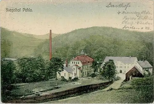 1560 wird hier Teubners Hammer erwähnt. Das Hammerwerk befand sich spätestens 1565 im Besitz von Balthasar Siegel, der zum Namensgeber der kleinen Siedlung um den Eisenhammer wurde. Sein Sohn Andreas und danach dessen Sohn Heinrich Siegel übernahmen das Hammerwerk. Beim großen Hochwasser im August 1661 entstand an Siegels Hammerwerk ein Schaden von 1110 Talern, davon allein 300 Taler, um den Hohen Ofen zu reparieren, der in den Fluten versunken war, weitere 300 Taler an zwei Schutzteichen, 100 Taler am Floßteich, 150 Taler an drei Wehren und drei Wassergefällen, die weggerissen worden waren. 6 Schock gelagerte Kübel mit Kohlen für 60 Taler und Floßholz im Wert von 100 Talern wurden weggespült. Weitere 100 Taler musste Heinrich Siegel für die Beseitigung des Schlammes in den Hüttengebäuden und im Hammergraben aufwenden. Darüber berichtete Christian Lehmann.[1] Im 18. Jahrhundert wurden beide Pöhlaer Hämmer vereint, in dem der Siegelsche Hammer in den Besitz der Familie von Elterlein auf Pfeilhammer überging. Bereits 1688 benannte man den Hammer nach seinem neuen Besitzer Biedermann. Letzte Besitzerin der Anlage in ihrer eigentlichen Funktion war bis Mitte des 19. Jahrhunderts die Firma Nestler & Breitfeld. Nestler und Breitfeld erwarben am 8. Oktober 1834 den Siegelhof.
