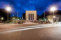 - ↑ Hannes Obermair: Das Beispiel Bozen oder: Lassen sich bauliche Relikte des Faschismus in demokratische Ressourcen transformieren? In: Ingrid Böhler, Karin Harrasser u. a. (Hrsg.): Ver/störende Orte. Zum Umgang mit NS-kontaminierten Gebäuden. Mandelbaum Verlag, Wien-Berlin 2024, ISBN 978-3-99136-019-3, S. 250–257, hier S. 254.