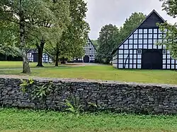 Ein Wanderweg[5] verläuft entlang des Laufs des Osterbachs zu einem sogenannten „Museumshof“. Dieses Freilichtmuseum von umgesetzten Fachwerkbauten des 17. bis 19. Jahrhunderts aus dem Minden-Ravensberger Land zeigt einen interessanten Einblick in die bäuerliche, westfälische Tradition. Weiter führt der Wanderweg zur kleinen Hofwassermühle, in der regelmäßig Schauvorstellungen stattfinden. Durch Feld, Wald und Wiesen verläuft der Weg weiter hangaufwärts – vorbei an den Schwedensteinen, großen Findlingen aus der Saale-Eiszeit – und bietet schöne Panoramablicke über die Ravensberger Mulde.