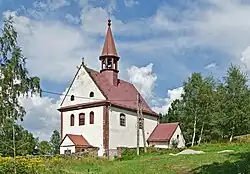 - Die 1690 erbaute Begräbniskapelle aus Holz mit dem Patrozinium Erzengel Michael wurde 1728 als Stiftung des damaligen Grundherrn Michael Friedrich von Althann aus Stein neu errichtet.