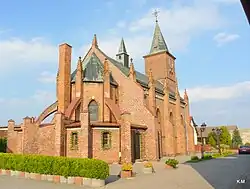 - Die römisch-katholische Johannes-Nepomuk-Kirche aus dem Jahr 1904 im neogotischen Stil