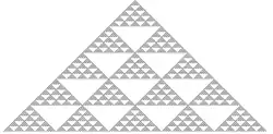 In Stephen Wolframs eindimensionalen zellulären Automaten erzeugt eine einzelne lebende Zelle in Regel 90 ein Sierpinski-Dreieck.