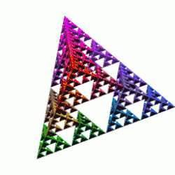 Dieser Algorithmus verdeutlicht den Zusammenhang. Bei jedem Iterationsschritt entstehen an den Ecken 3 zum Initiator ähnliche Dreiecke mit halber Seitenlänge und 1/4 des Flächeninhalts, die gefärbt werden. Das 4. innere kleine Dreieck, welches dabei entsteht, kann man sich als aus der Dreiecksfläche des vorhergehenden Schritts herausgeschnitten vorstellen.