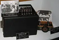 - ↑ Stephen J. Kelley: The SIGCUM Story – Cryptographic Failure, Cryptographic Success. Cryptologia 1997, 21:4, S. 289–316, doi:10.1080/0161-119791885940