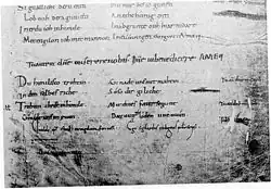 In das Freisinger Evangelienbuch, einer ins Altbairische übertragenen Abschrift der im 9. Jahrhundert in der südrheinfränkischen Varietät des Althochdeutschen geschriebenen Evangelienharmonie von Otfrid von Weißenburg, wurden ganz am Ende dieses heute unter der Signatur cgm 14 in der Bayerischen Staatsbibliothek in München befindlichen Manuskripts auf dem letzten Blatt 125r zum Text von Otfrid noch zwei jeweils zweizeilige Gebete hinzugefügt. Im ersten wird Gott um Gnade gebeten, im zweiten Christus. Es ist erkennbar, dass es sich hier um zwei getrennte Gebete handelt, da sie auf der linken Seite durch das Kürzel „At“ für lateinisch aliter (weiters, sonst) getrennt sind.