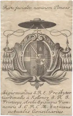 Kardinal Graf Kollonitsch war mit dem Schulorden der Piaristen eng verbunden, sein Wappen ziert die Fassade der Wiener Piaristenkirche Maria Treu.