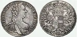 Die 1765 geprägten Ausbeute-Taler unterscheiden sich von den zuerst geprägten nur durch die Jahreszahl und den nunmehr geblümten Mantel der Kaiserin.