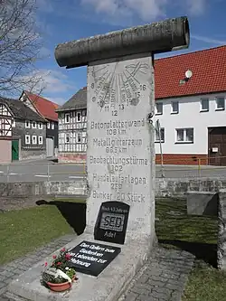 - Mauer-Denkmal von 1990 in Ortsmitte, mit einem Originalsegment der Berliner Mauer