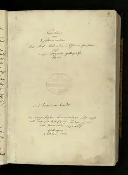 - ↑ Signatur 8* Cod. Ms. hist. lit. 103 Cim.; Datierung der SUB Göttingen: 20. Juni 1779.