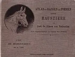 Atlas der Rassen und Formen unserer Haustiere in vier Teilen. I. Serie: Die Pferderassen, II. Serie: Die Schweinerassen. Die Schafrassen. Die Ziegenrassen, III. Serie, IV. Serie: Verschiedenheit der Formen, verursacht durch Variabilität, Gebrauchszweck, Aufzucht, Alter, Geschlecht u.s.w.