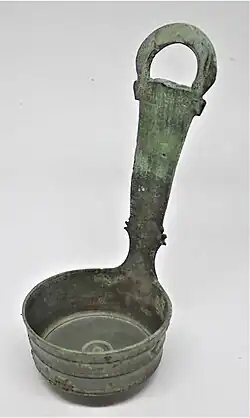 Es handelt sich um ein archaisches Gerät. Im täglichen Leben fand für den Zweck der griechische Kyathos Verwendung.