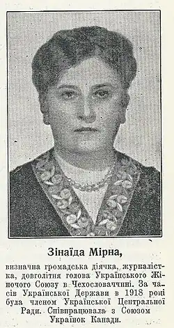 Sinajida Mirna (ukrainisch Зінаїда Мірна, * 12. Oktober 1878 in Horodnja, Gouvernement Tschernigow, Russisches Kaiserreich; † 1. April 1950 in Prag)[1] war eine ukrainische Politikerin und Sozialaktivistin.