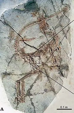 Sinosauropteryx ist eine Gattung kleiner theropoder Dinosaurier aus der Unterkreide von China. Bei seiner wissenschaftlichen Erstbeschreibung 1996 war er der erste Dinosaurier außerhalb der Avialae (Vögel und nahe Verwandte), bei dem Federn nachgewiesen werden konnten. Sinosauropteryx lebte im Aptium vor etwa 126 bis 113 Millionen Jahren. Die einzige bekannte Art ist Sinosauropteryx prima. Sinosauropteryx demonstriert, wie viele andere gefiederte Dinosaurier, eine große stammesgeschichtliche Nähe zu den Vögeln, die von fleischfressenden Dinosauriern abstammen.