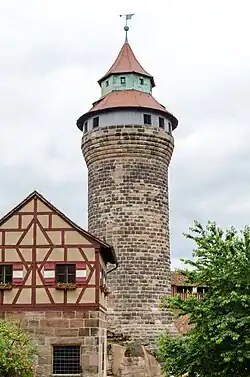 Der Turm wurde in der zweiten Hälfte des 13. Jahrhunderts auf einem markanten Felsen im östlichen Bereich der Nürnberger Kaiserburg errichtet und zeichnet sich durch rechtwinklig bearbeitete und rund angeordnete Sandsteinbuckelquader aus. Bei Renovierungs- und Erweiterungsarbeiten in den 1560er Jahren wurde der Spitzhelm mit vier Erkern durch ein weiteres Geschoss sowie ein Zeltdach mit Renaissancehelm ersetzt.[1][2]