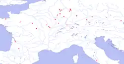 - ↑ z. B. Augusta Raurica: Herbert Nesselhauf, Hans Lieb: Dritter Nachtrag zu CIL XIII: Inschriften aus den germanischen Provinzen und dem Treverergebiet. In: Bericht der Römisch-Germanischen Kommission 40, 1959, S. 158 Nr. 97.
