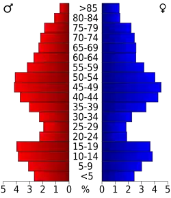 Auf das gesamte County bezogen setzte sich die Bevölkerung zusammen aus 24,00 % Einwohnern unter 18 Jahren, 6,70 % zwischen 18 und 24 Jahren, 22,70 % zwischen 25 und 44 Jahren, 28,40 % zwischen 45 und 64 Jahren und 18,10 % waren 65 Jahre alt oder darüber. Das Durchschnittsalter betrug 43 Jahre. Auf 100 weibliche Personen kamen 96,50 männliche Personen, auf 100 Frauen im Alter ab 18 Jahren kamen statistisch 94,10 Männer.