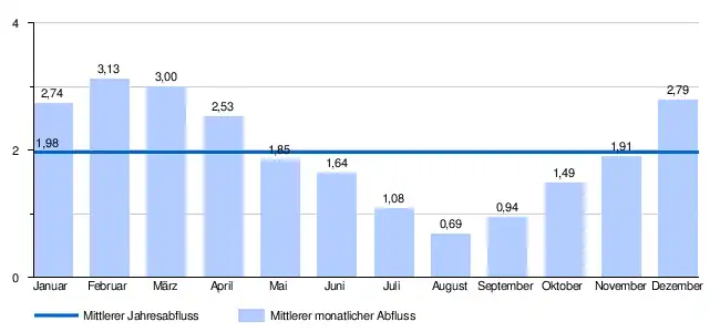 - ↑ Martin Pfaundler, Rolf Weingartner, Robert Diezig: „Versteckt hinter den Mittelwerten“ – die Variabilität des Abflussregimes. In: Hydrologie und Wasserbewirtschaftung (HyWa). Jg. 50, Heft 3, 2006, S. 116–123, hier Tabelle auf S. 119 (Download [PDF; 3,2 MB; abgerufen am 31. August 2020]). Abrufbar unter Gesamtes HyWa Heft 3, 2006..