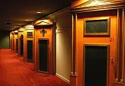 Der Kinosaal hatte eine gewölbte Decke, die dunkelblau gestrichen war, das sollte an einen Nachthimmel erinnern. Von der Decke hingen runde Lampen (später entfernt), die den freien Raum unterstrichen. Die Türen zu den seitlichen Rängen waren wie Hausfassaden gestaltet. Das übrige Interieur wurde in roten Farbnuancen gehalten. Die gesamte Komposition sollte an eine Freilichtbühne erinnern.[2] Am 20. September 1923 fand die feierliche Einweihung statt.