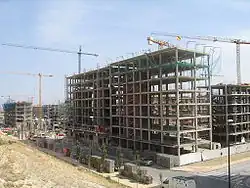 Unter Skelettbau (gelegentlich auch Gerippebau genannt) versteht man in Architektur und Bauwesen eine Art des Tragwerks mit freiem Grundriss. Er ist den Leichtbauweisen zuzurechnen.[1] Die traditionellen Funktionen der Wand als lastabtragendes und zugleich raumabschließendes Element sind beim Skelettbau voneinander entkoppelt, die Wand auf den Raumabschluss ohne statische Funktion reduziert. Im Gegensatz zum Massivbau werden die Lasten aus weiter oben angeordneten Bauteilen, z. B. Decken, weiteren Geschossen oder Dächern des Bauwerks beim Skelettbau überwiegend von Trägern (horizontal) und Stützen (vertikal) nach unten abgeleitet.