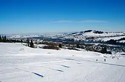 Von der Magura Witowska führen zwei Skipisten ins Tal.
