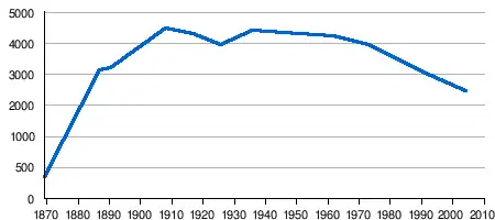 | Jahr | 1869 | 1875 | 1880 | 1900 | 1910 | 1915 | 1921 | 1931 | 1936 |