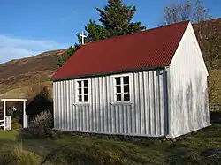 Die kleine Holzkirche Fitjakirkja am Ostufer des Sees Skorradalsvatn wurde 1896–1897 auf dem traditionsreichen Hof Fitjar erbaut.[2] Schon lange vor der Reformation stand hier eine katholische Kirche, die dem hl. Nikolaus geweiht war. Die erste urkundliche Erwähnung der Fitjakirka findet sich in einer Liste aller Kirchen Islands, die Bischof Pál Jónsson im Jahre 1200 zusammenstellte.[3] Die Kirche wurde von den auf dem Gehöft Fitjar ansässigen Landwirten Gebr. Júlíus und Stefán Guðmundsson errichtet, und sie war eine der letzten Kirchen Islands, die ohne einen Turm oder Dachreiter erbaut wurde.[4] Die Bänke standen ursprünglich in Längsrichtung zum Kirchenschiff. Diese Anordnung war früher auf Island weit verbreitet, und die Fitjakirkja behielt als letzte Kirche des Landes diese Sitzordnung bei. Erst seit 1950 stehen auch hier die Bänke quer zum Kirchenschiff. Die Bemalung der Kanzel ist von 1790. Anlässlich ihres hundertjährigen Bestehens erhielt die Kirche 1997 ein neues Altargemälde, das die Künstlerin Þóreyja Magnúsdóttir gestaltet hatte. Die Fitjakirkja hat eine Länge von 6,41 m und eine Breite von 4,48 m und steht seit 1990 unter Denkmalschutz.[5]