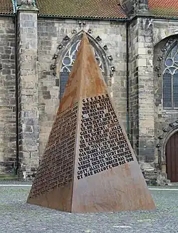 Die unter Mitwirkung von Gerd Winner gestaltete Skulptur besteht aus einer sechs Meter hohen und 5,7 Tonnen schweren Pyramide aus fünf Zentimeter dickem Stahl mit einer unteren Kantenlänge von ca. 3,5 Metern,[1][2] die zur Andreaskirche hin offen ist.[1]