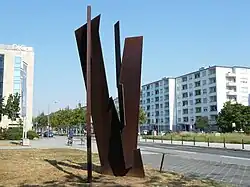 Reinhard Scherer | Gestütztes Gefüge 1992 Eisen Diese Skulptur steht direkt vor dem Mannheimer Kunstverein. |