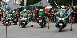 Rechts: Die außen liegenden Stangen werden nicht mehr aufgestellt. Die Fahrer müssen zwischen den bestehenden und den „entfernten“ Stangen durchfahren. Bei vertikalen Toren bleiben beide Stangen bestehen.