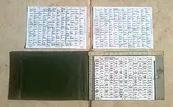Zusätzlich befand sich in jeder Zelle noch in Rot ein Buchstabe oder eine Zahl. Damit konnten auch Wörter, die nicht aufgeführt waren, buchstabiert werden oder Zahlen, beispielsweise Frequenzangaben, mitgeteilt werden (siehe auch: Foto unter Weblinks). Statt der Ausdrücke in den Zellen wurden die entsprechenden Koordinaten, also Zeilennummer und Spaltennummer, per Sprache übermittelt.