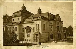 Die Entwicklung des Slowenischen Nationaltheaters wurde maßgeblich durch die slowenische Kulturvereinigung Dramatische Gesellschaft (slowenisch: Dramatično društvo) in der zweiten Hälfte des 19. Jahrhunderts befördert.[2] In diesem Zusammenhang wurde 1892 das Opernhaus Ljubljana Krainer Landestheater (Deželno gledališče) eröffnet, in dem Aufführungen in deutscher und slowenischer Sprache angeboten wurden. 1911 wurden die Aufführungen des deutschen Ensembles in einen Neubau, das heutige Schauspielhaus, das damalige Kaiser-Franz-Josef-Jubiläumstheater des deutschen Theatervereins verlegt.