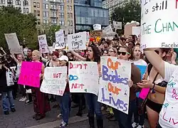Beim Slutwalk 2012 erschienen Teilnehmerinnen der Organisation Femen mit schwarz bemalten Gesichtern und Oberkörpern, um Frauen mit Niqab darzustellen. Einige von ihnen trugen Plakate gegen Kopftuchzwang. Im Anschluss an diese Aktion gab es Kritik aus der Antirassismusszene.[18]