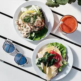 - ↑ Vgl.: Britta Meyer: Smörgås- & Smørrebrød-Rezepte. In: skandinavische-kueche.de (Blog Meine skandinavische Küche). Abgerufen am 31. März 2018.