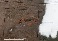 - ↑ A visual guide to the Texas wildfire. In: The Guardian, 1. März 2024. Abgerufen am 2. März 2024.