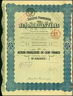 Die Société des Moteurs et Automobiles Zedel (ZL) war ein französisches Unternehmen zur Produktion von Motoren, Motorrädern und Automobilen und gehörte zum Schweizer Hersteller Fabrique de Moteurs et de Machines ZL.[1][2][3]