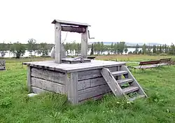 Ziehbrunnen mit Seilrolle – historischer Brunnentyp, wo mit Hilfe der Konstruktion Wasser an die Oberfläche befördert wird.