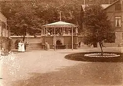 An dieser Stelle existierte bereits in der Mitte des 19. Jahrhunderts der Heilbrunnen namens Hälsan. Es gab dort eine Quelle mit eisenhaltigem Wasser, das für medizinische Zwecke verwendet wurde. Diese befand sich in Privatbesitz. Hier errichtete Mårten Möller eine Art Vergnügungspark, zu dem auch ein Gasthaus mit Unterhaltungs-, Erholungs- und Brunnenanlage gehörte. Königin Fredrika Dorothea Wilhelmina, die Ehefrau König Gustaf IV. Adolfs soll 1807 selbst dort gewesen sein und der Anlage den Namen „Hälsan“ gegeben haben. Anschließend baute Jacob Balabrega (1793–1859),[3] der 1827 mit seinem Kunstkabinett nach Helsingborg kam und der Eigentümer des Anwesens wurde, die Brunnenanlage zu einem Unterhaltungszentrum aus.[1]