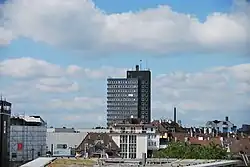 Bedingt durch die Zerstörungen im Zweiten Weltkrieg und diverse Niederlegungen von Gebäuden für die Erweiterung von Verkehrsflächen in der Nachkriegszeit, unter anderem am Schlagbaum, ist in Solingen-Mitte weniger historische Bausubstanz erhalten als in anderen Teilen der Stadt. Die mehr als 1.000 Objekte zählende Denkmalliste der Stadt Solingen verzeichnet im Stadtbezirk Mitte nur rund 80 Baudenkmäler, die meisten davon außerhalb der zerstörten Altstadt.[16] Die Luftangriffe im November 1944 schwer beschädigt überstanden hat das im Stil des Historismus entstandene Haus Tückmantel, das sich am Graf-Wilhelm-Platz befindet und im ursprünglichen Zustand wieder aufgebaut wurde. Das gilt auch für einige weitere Wohn- und Geschäftshäuser am Neumarkt sowie das Gebäude des heutigen Arbeitsgerichts. Ein Baudenkmal neuerer Zeit bildet das Gebäude der Industrie- und Handelskammer, das in den 1950er Jahren errichtet wurde.