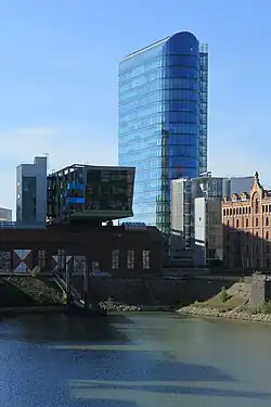 Das von Maki seit etwa 1997 nach dem Vorbild seines Tokioter Projekts Hillside West geplante Bürogebäude[1][2] entstand in einem Ensemble ambitionierter Architekturvorhaben im Düsseldorfer Medienhafen und wurde als Solitär zwischen Speditionsstraße und Julo-Levin-Ufer in den Formen und der Materialsprache moderner japanischer Architektur errichtet. Das in den Oberflächen aus Aluminium und Glas mit dem Backstein der benachbarten historischen Mälzerei kontrastierende Gebäude hat acht Geschosse und verfügt über eine Nutzfläche von etwa 2200 m².