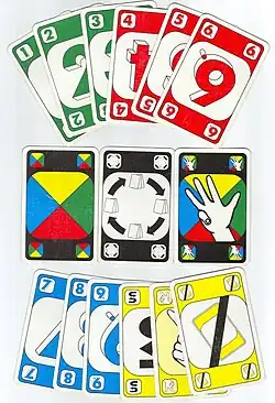 | →← | Richtungswechsel – bei mehr als zwei Spielern wird die Spielrichtung gewechselt, bei zwei Spielern hat die Karte die gleiche Funktion wie die Überspringen-Karte. |
