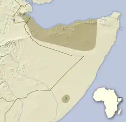 Die Somali-Elefantenspitzmaus hat ein nur kleines Verbreitungsgebiet im östlichen Afrika, das sich weitgehend auf die Nordküste von Somalia beschränkt, möglicherweise tritt sie auch entlang der Ostküste Somalias bis zu 470 km weit nach Süden auf. Nur im Gebiet um Garoowe kommt die Art weiter im Innenland vor. Im westlich von Somalia benachbarten Dschibuti wurde sie 2019 erstmals nachwiesen. Hier ist sie von rund einem halben Dutzend Lokalitäten bekannt, die sich vom Forêt du Day im Norden rund 100 km nach Süden bis Assamo verteilen. Nach Osten hin wird auch die Umgebung des Djalélo-Naturschutzgebietes erreicht. Assamo liegt nahe zur Grenze nach Äthiopien. Die Region zeigt keine natürlichen Barrieren, so dass die Somali-Elefantenspitzmaus wahrscheinlich auch in Äthiopien heimisch ist. Das gesamte bekannte Verbreitungsgebiet umspannt somit rund 106.000 km².[4] Die Höhenverteilung der Somali-Elefantenspitzmaus reicht von Tiefländern bis in die Bergregionen um 1300 m, der höchste Nachweis liegt vom Goda-Massiv in Dschibuti mit 1489 m vor. Der Lebensraum besteht aus hauptsächlich offenen Landschaften der Somalia-Massai-Buschlandezone, wobei die Art steinigen bis felsigen Untergrund bevorzugt. Tiere in der Assamo-Region leben in trocken-wüstenartigen Landschaften mit Temperaturen von 21,1 bis 31,6 °C, rund 200 mm Jahresniederschlag und bestanden mit Kaperngewächsen. Im Forêt du Day hingegen herrscht halbwüstenartiges Klima, die Temperaturen schwanken um 16,4 bis 25,9 °C, der Jahresniederschlag liegt bei 430 mm. Der Pflanzenbewuchs besteht aus Akazien, Ölbäumen und Wacholder.[4] Teilweise kommt die Somali-Elefantenspitzmaus sympatrisch zur Rotbraunen Elefantenspitzmaus vor, die aber sandigere Areale bewohnt. Möglicherweise ist die Art lokal eher selten.[1][2][3][5]