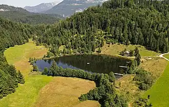 Der See hat seinen Namen von einem Bauernhof, zu dem er gehört.